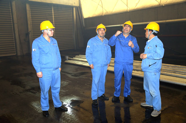 10月25日,集團(tuán)公司黨委書記、董事長李躍民分別到萬基鋁業(yè)一公司和二公司、石墨公司實(shí)地察看環(huán)保超低排放改造項(xiàng)目進(jìn)展情況,到發(fā)電公司察看了30萬千瓦機(jī)組煤場氣膜封閉工程完工后運(yùn)行情況。每到一處,他詳細(xì)詢問了環(huán)保項(xiàng)目施工進(jìn)度情況和存在的問題,要求各相關(guān)單位一定高度重視、克服困難、保證質(zhì)量,加快進(jìn)度,確保項(xiàng)目按計劃完成,實(shí)現(xiàn)達(dá)標(biāo)排放,為企業(yè)可持續(xù)發(fā)展提供保障;要求發(fā)電公司針對汽車尾氣突出問題聯(lián)系設(shè)計部門,盡快拿出解決方案。
