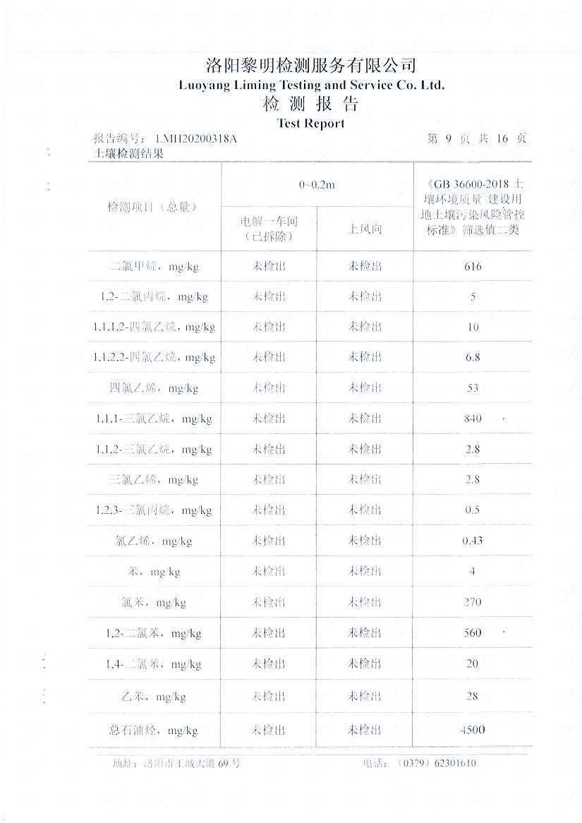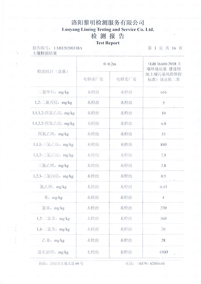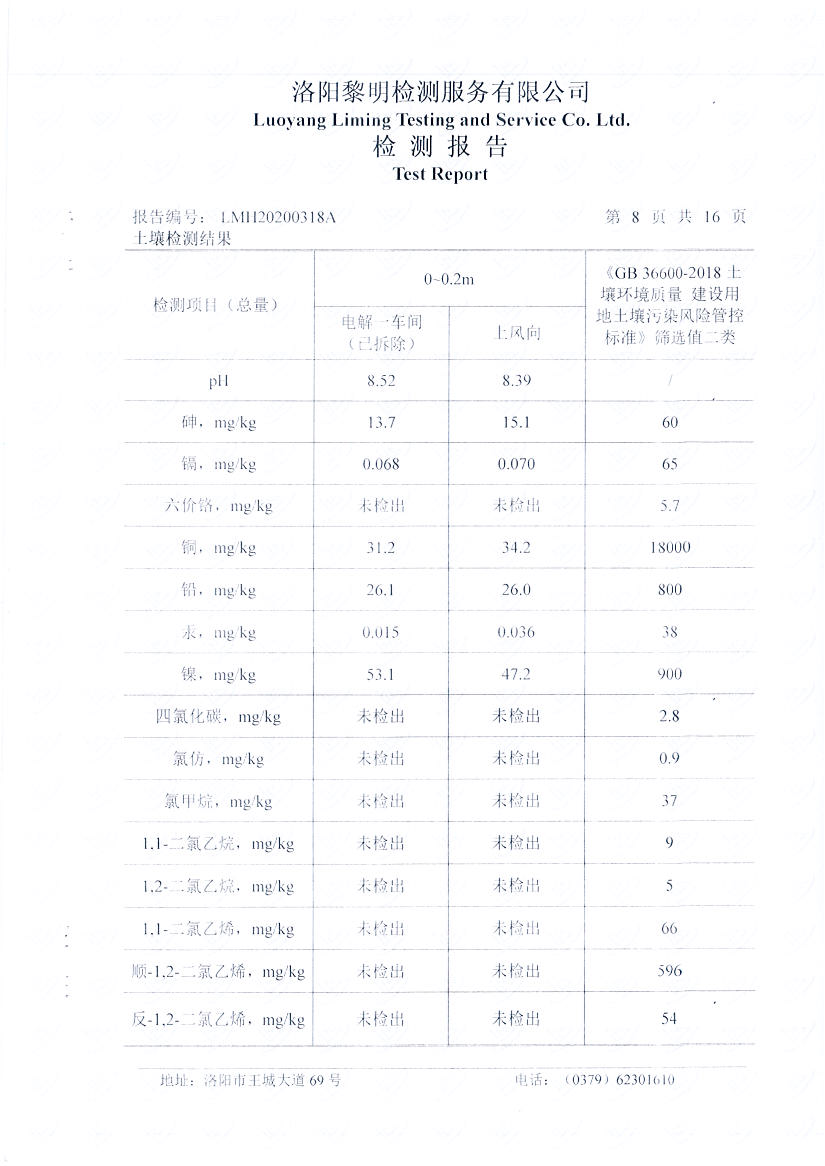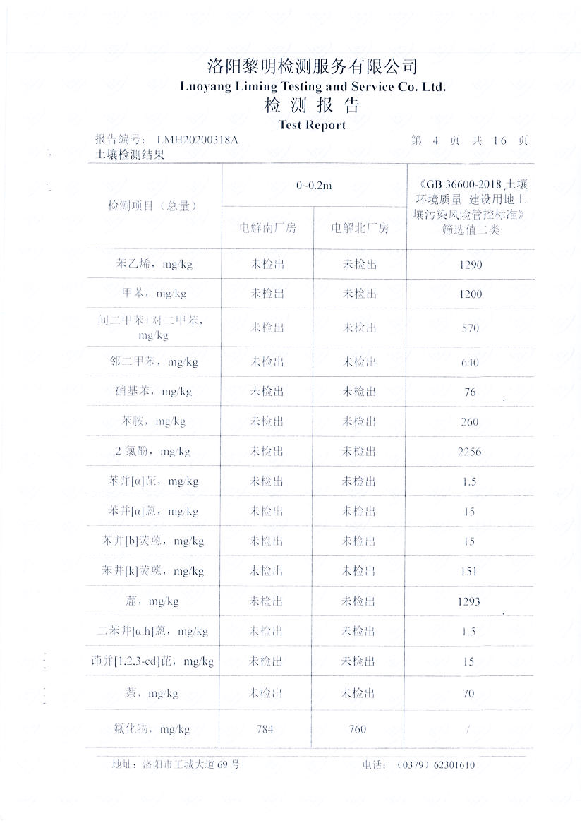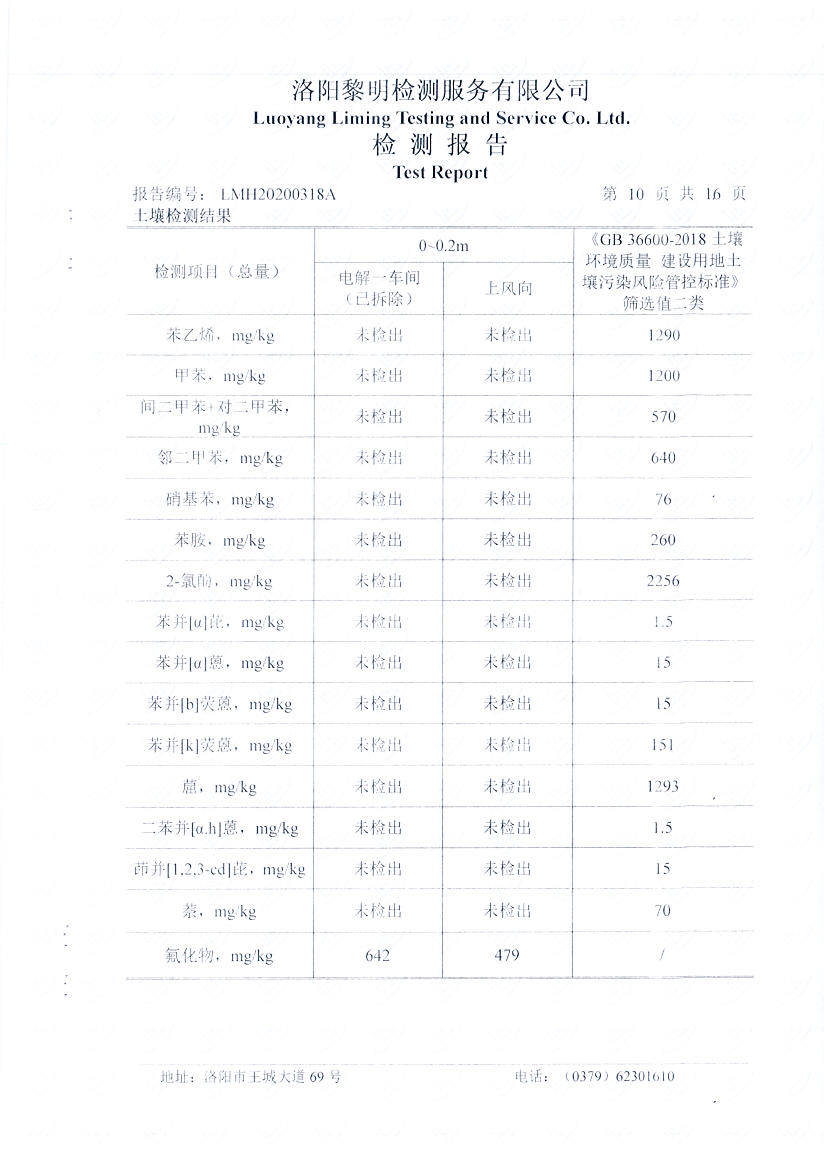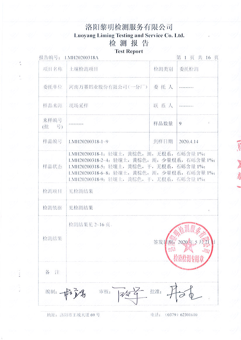 河南萬基鋁業(yè)股份有限公司(一分廠)2020土壤自行檢測報告