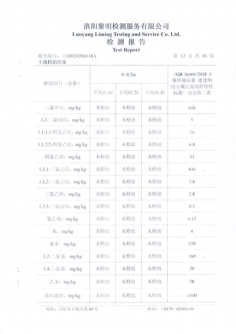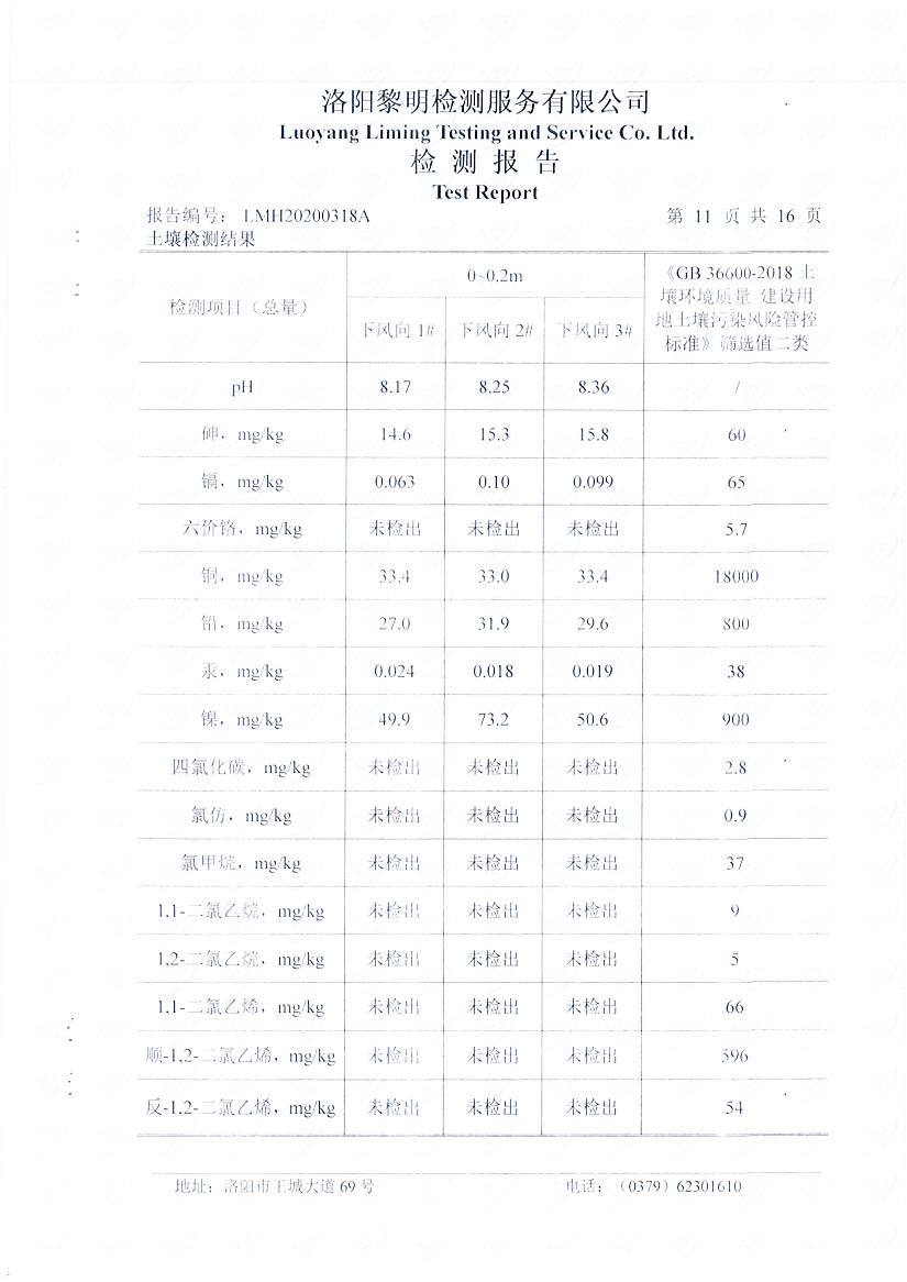 洛陽萬基鋁加工有限公司2019年土壤自行檢測方案