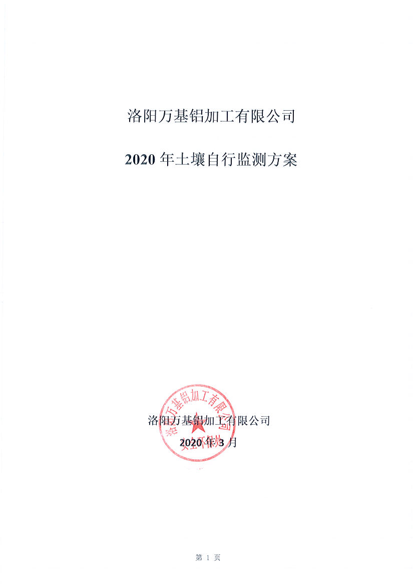 洛陽萬基鋁加工有限公司2020土壤自行監(jiān)測(cè)方案