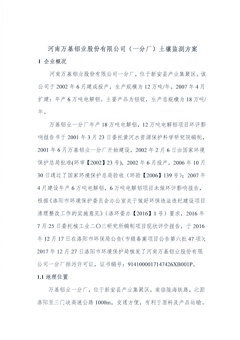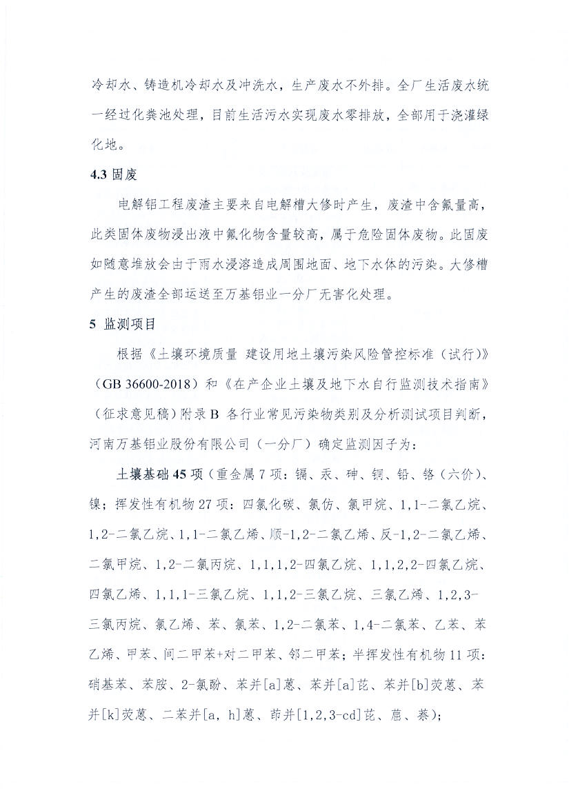 > 新聞動態(tài) > 通知公告集團新聞熱點新聞萬基新聲通知公告 >  河南萬基鋁業(yè)股份有限公司(一分廠)2020土壤自行監(jiān)測方案