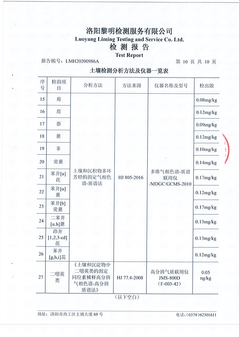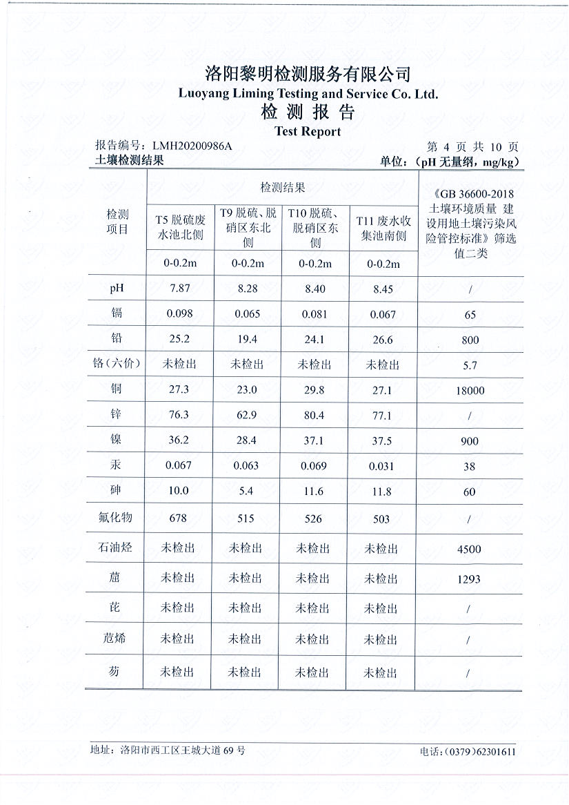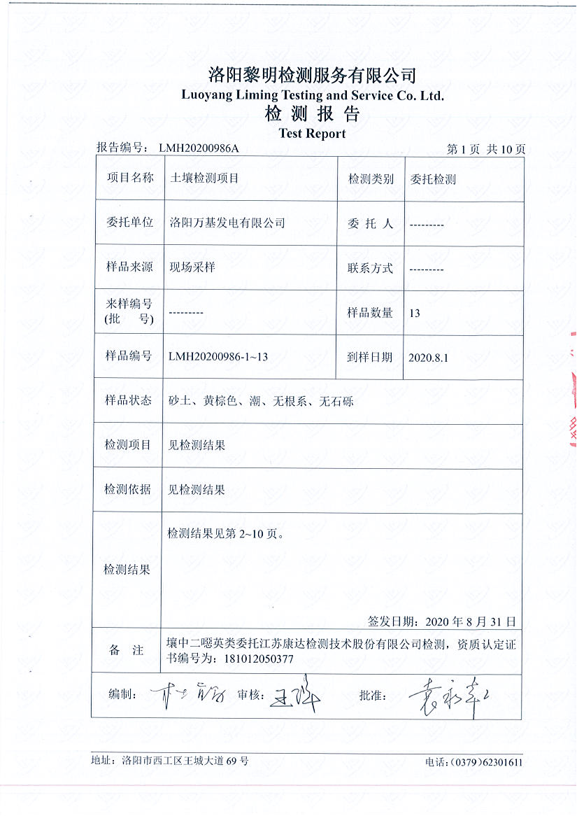 洛陽(yáng)萬(wàn)基發(fā)電土壤檢測(cè)報(bào)告
